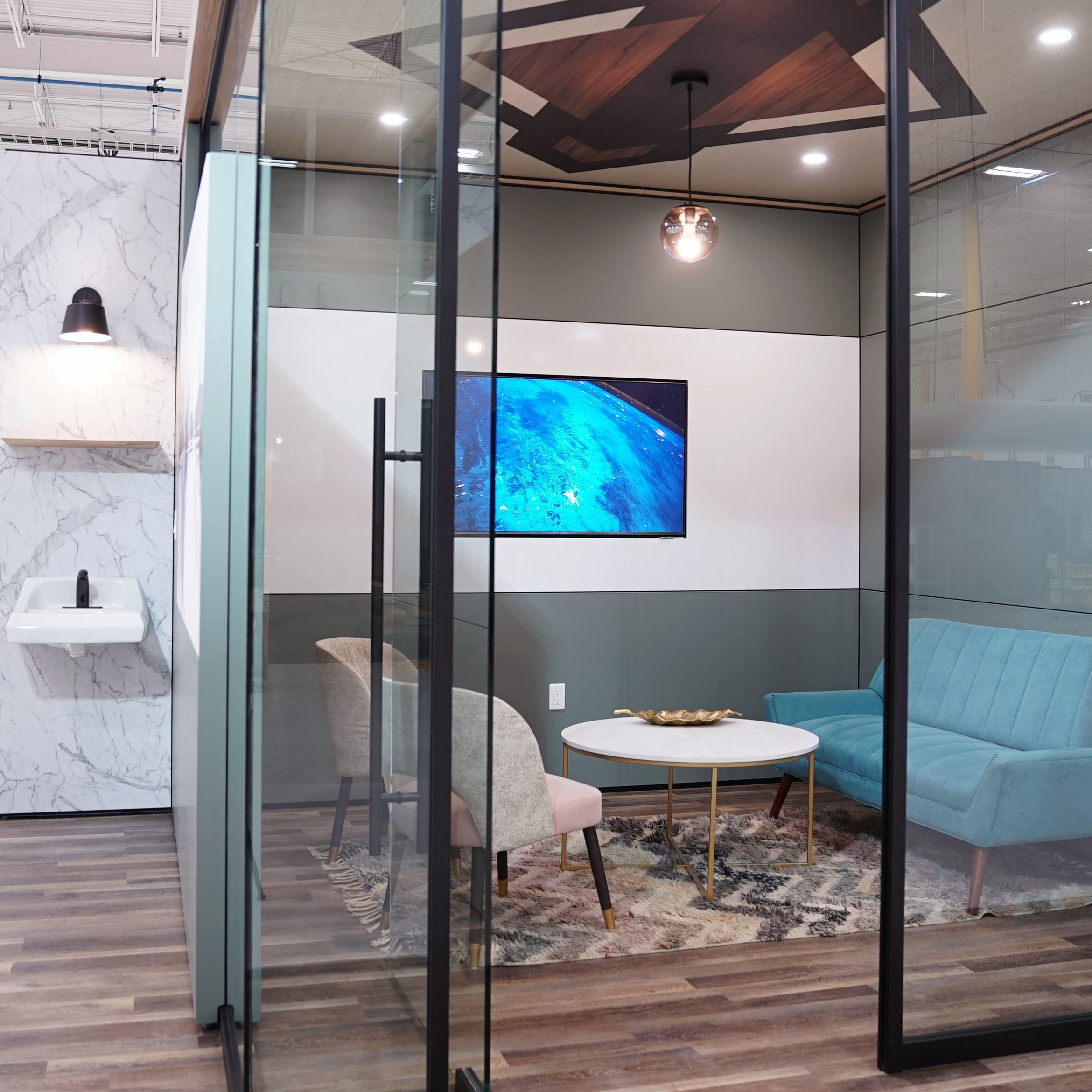 Glass Partitions: Installation of glass partitions to create separate spaces within a room or office, providing transparency and an open feel.